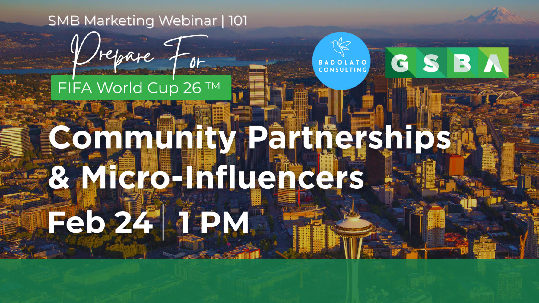 Join GSBA, in partnership with Badolato Consulting, for a free webinar designed to help small and mid-sized businesses prepare for and benefit from FIFA World Cup 2026™. As Seattle prepares to host matches and welcome international visitors, local businesses have a unique opportunity to increase visibility, build community connections, and drive long-term growth.