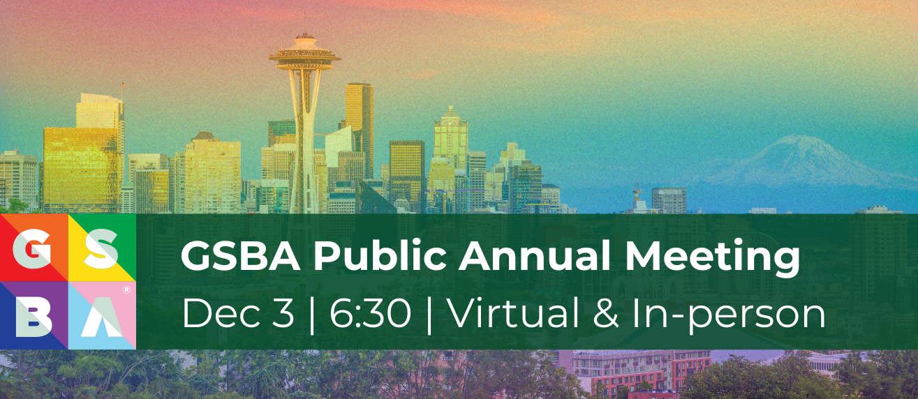 GSBA will be confirming our incoming slate of board board members and saying goodbye to folks moving on. This annual meeting is open to the public, and will include a virtual and in-person option.
